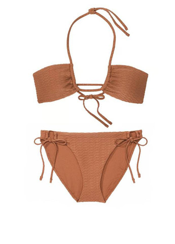 Роздільний купальник Victoria´s Secret. Стильний та цікавий купальник стане улюбленим елементом у Вашому пляжному гардеробі. Ви виглядатимете в ньому дуже елегантно та ефектно! Бюст на кісточках, розділене прямокутним вирізом і має витончену зав'язку на шнурки ззаду. М'які чашки. Бретелі регульовані. Красиві плавки чіки з високою посадкою, спереду оздоблені декоративним вузлом. Логотип бренду позаду. Міні спідниця для купання. Декоративні вузол спереду, логотип бренду позаду. М'який матеріал, унікальний текстури набір. Відмінна якість.
