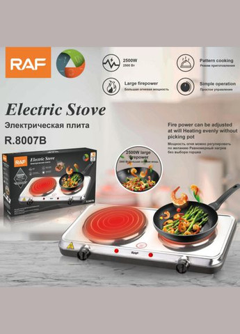 Двоконфоркова електрична плита кухонна RAF R.8007 настільна переносна електроплита дискова В умовах обмеженого простору малогабаритної кухні, купівля та встановлення повнорозмірної плити часто не є можливим. На дачі, в офісі або іншому місці, де необхідно приготувати або розігріти їжу, Вам знадобиться настільна плита. Рекомендуємо Вам купити електроплиту RAF R.8007. Корпус електроплити RAF R.8007 зроблений з нержавіючої сталі. Чорна емаль покриття надає плиті стильного, сучасного вигляду. Наявність двох конфорок роблять її менш компактною порівняно з одноконфорковими аналогами, але більш функціональною. Електроплита RAF R.8007 спирається на чотири прогумовані ніжки. Вони мають протиковзкі властивості, а також не дряпають поверхню стільниці при переміщенні. На передній частині корпусу електроплити RAF R.8007 розміщені світлові індикатори живлення, що показують роботу відповідної конфорки. Також тут розташовані механічні поворотні перемикачі термостата. За допомогою плавного перемикання Ви можете вибрати необхідну температуру. Чавунні диски електроплити RAF R.8007 мають різний розмір - 165 мм та 130 мм. За допомогою потужності 2500Вт, варильна поверхня розігрівається дуже швидко. Її максимально можлива температура коливається не більше 500 градусів. Характеристики Тип: електрична Тип керування: поворотні перемикачі Кількість конфорок: 2 Потужність великої електроконфорки: 1500 Вт Потужність малої електроконфорки: 1000 Вт Діаметр великої конфорки: 165 мм Діаметр малої конфорки: 130 мм Матеріал конфорок: чавун Температура поверхні: 500 °С Світловий індикатор живлення Комплектація Електроплита RAF R.8007 Упаковка: заводська коробка