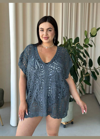 Короткі рукави забезпечують свободу рухів і легкість, а круглий виріз горловини додає лаконічності та класичної форми, гармонійно врівноважуючи сміливість напівпрозорого матеріалу. Вільний крій туніки не сковує тіло, дозволяючи носити її як самостійний елемент у пляжних образах, або ж як стильну накидку поверх літнього одягу.