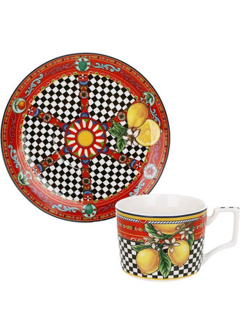 Чайно-кава набір Sicilia "Limoni" — це не просто посуд, а справжня знахідка для цінителів естетики та затишку. Цей набір, що складається з 6 чашок і 6 блюдець, виконаний з високоякісного фарфору і стане чудовим доповненням до вашого столу. Яскраві мотиви італійського острова Сицилія, зображені на посуді, створять атмосферу тепла і радості під час чаювань та кавових зустрічей з друзями та близькими. Кожна чашка в наборі має об'єм 220 мл, що ідеально підходить для подачі як чаю, так і кави. Розміри чашок складають Ø8.3х6.5 см, а блюдець — Ø15х2 см, що робить їх зручними у використанні та легкими в обслуговуванні. Набір упакований у стильну кольорову картонну коробку, що робить його відмінним варіантом для подарунка. Переваги: Висока якість: Виготовлено з міцного та довговічного фарфору, який легко миється в посудомийній машині. Естетика: Яскравий і запам'ятовуючий дизайн з лимонними мотивами, який привнесе в ваш дім атмосферу Сицилії. Зручність: Комплект з 6 чашок і блюдець, що ідеально підходить для сімейних зустрічей та дружніх посиденьок. Подарункова упаковка: Чудове рішення для подарунка на будь-яке свято. Цей набір ідеально підійде для: Любителів чаю та кави, які цінують стиль і комфорт. Тих, хто часто приймає гостей і хоче створити затишну атмосферу. Тих, хто шукає оригінальний подарунок для близьких на день народження, весілля чи інше свято. Основні функції та вигоди набору Sicilia "Limoni" полягають у його універсальності та естетичній привабливості. Він не тільки зручний у використанні, але й стане справжньою прикрасою вашого столу, підкреслюючи ваш смак та стиль. Насолоджуйтеся моментами разом з близькими, використовуючи цей чудовий чайно-кава набір!