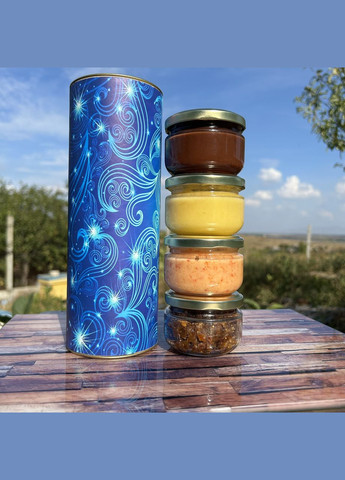 Пропонуємо Подарункові набори з натуральним медовими смаколиками для вас, ваших, друзів, знайомих і близьких. Є готові набори або можна зібрати свій Набір Подарунковий маленький № 2 Крем мед кизил 100мл (120 грам) Крем мед шоколад 100мл (120 грам) Крем мед імбир-лимон 100 мл (120 грам) Паста Амосова 100 мл ( 120 грам) Упаковано у Подарунковий картонний тубус Діаметр 80 мм висота 220 мм Зверніть увагу: Крем мед можна обрати будь-який з наявних на момент замовлення.