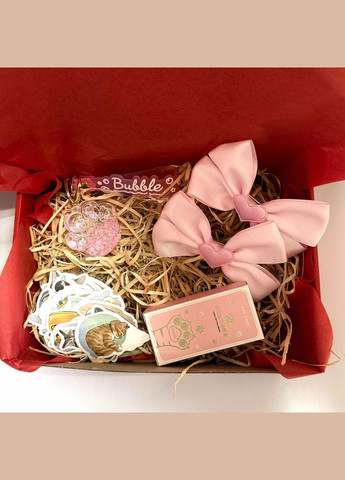 Подарунковий бокс для дівчат . До боксу входить : 50 наліпок з котиками , блиск у формі лапки , 2 чарівних бантика які прикрасять волосся( є ще в червоному кольорі ) та брелок у формі лапки