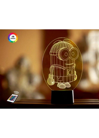 3D нічник Міньйон Боксер (ЗБІЛЬШЕНИЙ ЗОБРАЖЕННЯ) подарункова упаковка + 16 кольорів + пульт ДК + мережевий адаптер + батарейки (3ААА) 3DTOYSLAMP 3D світильники-нічники торгової марки 3DTOYSLAMP з ефектом тривимірного зображення стану. Колір світіння змінюється натисканням на кнопку на корпусі, а також за допомогою пульта дистанційного керування. Є режим автоматичного переключення кольорів та можливість регулювати яскравість підсвічування нічника. Безпека. Світильник не нагрівається, не має запаху. Робота від батарейок та мережі. 3D світильник Міньйон Боксер може працювати від мережі, комп'ютера або power-банка, а так само від батарейок (мікропальчикові 3 шт) ІДУТЬ У КОМПЛЕКТІ. Керування за допомогою пульта: Направте пульт у бік бази. Натисніть ON для увімкнення, OFF для вимикання лампи. Яскравість свічення регулюється за допомогою кнопок зі стрілками вгору/вниз. Щоб вибрати колір свічення, натисніть кнопку відповідного кольору. FLASH зміна кольору по порядку. STROBE зміна кольору у випадковому порядку. FADE кольори змінюються із ефектом згасання. SMOOTH плавна зміна кольору. Вам сподобалося кілька дизайнів 3D нічників і не знаєте який вибрати? Чи можливо вашій дитині сподобався інший мультяшний герой або Ви змінили інтер'єр у вашому приміщенні? Не обов'язково купувати новий нічник! Унікальною особливістю 3D нічників є те, що зображення в ньому знімні. Досить замовити у нас додаткове зображення - і у Вас новий 3D нічник! характеристики: Колір світла: 16 кольорів світіння Матеріал: акрил, пластик Розмір: 23х16см Потужність: 5 Вт Комплектація: подарункова упаковка, корпус, акрилова пластина (ЗБІЛЬШЕНИЙ ЗОБРАЖЕННЯ), пульт ДУ, USB-кабель 1.5 м, Аттер, А3, мережевий адаптер інструкція українською мовою Гарантія:12 місяців Ресурс лампи:до 50 000 годин роботи МАТЕРІАЛИ НЕ МІСТЬ ШКІДЛИВИХ РЕЧОВИН! НЕ НАГРІВАЄТЬСЯ! БЕЗПЕКА ДЛЯ ДІТЕЙ! Вся продукція торгової марки 3DTOYSLAMP пройшла ретельну перевірку на якість!