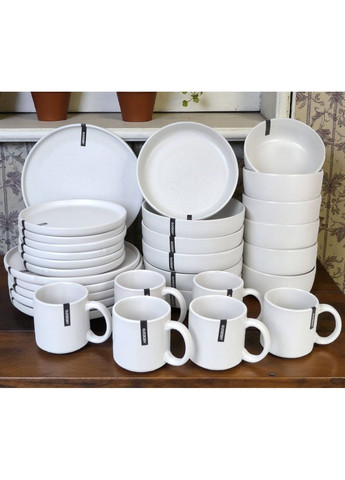 Набір посуду без подарункового паковання, у тих тарі (некольорова коробка) Характеристики та опис Основні Виробник Кількість осіб 6 Кількість предметів 30 Матеріал Кераміка Колір Білий Підходить для миття в посудомийній машині Да Використання в мікрохвильовці Да Зберігання в холодильнику Да Склад Тарілка обідня 6 шт. Тарілка супова 6 шт. Тарілка десертна 6 шт. Салатник маленький 6 шт. Чашка чайна 6 шт. Комплектація сервізу: тарілка обідня 26.5 см — 6 шт. тарілка супова 21.5 см — 6 шт. тарілка десертна 20.5 см — 6 шт. Салатник 16 см — 6 шт. Чашки об'єм 400 мл - 6 шт Неймовірно стильний набір білого посуду полонить серця Ваших гостей! Чудово підійде як для домашнього використання, так і для сервірування столу в закладах. Різноманітність посуду в наборі дасть змогу засервувати безліч різних страв — супи, салати, десерти, закуски та інше. Набір повністю виготовлений із надміцної кам'яної кераміки, яка є 100% екологічно чистим матеріалом. Квадратні та круглі тарілки стильно поєднуються, мають гладку поверхню та не вбирають сторонніх запахів і кольорів.