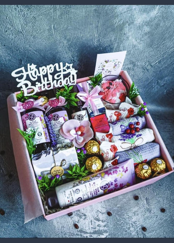 Подарунковий набір для жінки “Happy Birthday” — стильний, ароматний та практичний бокс, створений з любов’ю до деталей. Ідеальний подарунок на день народження, 8 березня, для мами, подруги чи колеги. Наповнення підібране так, щоб подарувати справжнє задоволення, релакс та турботу. Склад подарункового боксу: Туалетна вода Yves Rocher, Франція — 30 мл Парфумований спрей для тіла та волосся Yves Rocher — 100 мл Гель для душу Yves Rocher — 200 мл Рідке мило Yves Rocher — 190 мл Скраб для тіла Yves Rocher — 150 мл Натуральне мило ручної роботи Натуральна соєва свічка ручної роботи Бальзам для губ Oriflame Набір з 3-х м’яких бавовняних рушників Цукерки Ferrero Rocher та Raffaello Вітальна листівка та святковий декор Подарункова коробка 27х27 см Деякі елементи декору та пакування можуть змінюватися на елементи такої ж вартості та якості! Переваги: Оригінальна продукція Yves Rocher (Франція) Натуральні компоненти (мило, свічка) Естетичне оформлення, що не потребує додаткової упаковки Універсальний подарунок для жінки будь-якого віку Для кого підійде: Для мами, подруги, дружини, колеги, сестри На день народження, 8 березня, День матері, Новий рік