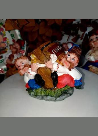 Зберігайте гроші з гумором! Представляю вашій увазі скарбничку "Два українські куми тягнуть бочку з пивом", виконану в національних традиціях України. Щоразу, коли ви кладете гроші у цю скарбничку, позитивний настрій вам гарантовано.