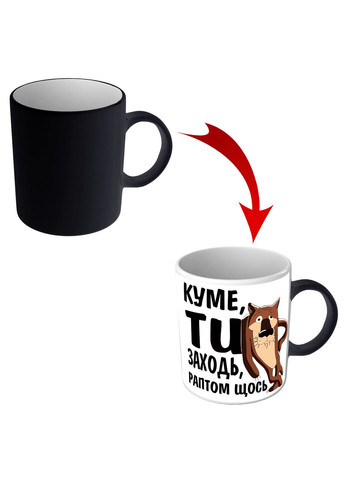 Чашка хамелеон для кума Куме, ти заходь раптом щось - прикольна чашка в подарунок для улюбленого кума на Новий рік, День народження, Хрестини, День захисника України, Різдво.