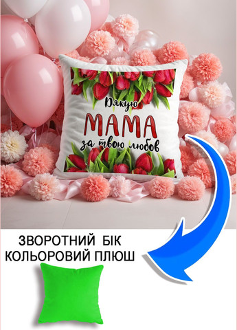 На звороті кольоровий плюш. Подушечка м'яка, приємна на дотик. Наволочка знімається. Насичені яскраві кольори, стійкі до прання та вигоряння. Як листівка або самостійний подарунок довго радуватиме ваших близьких. А ще на ній можна спати!