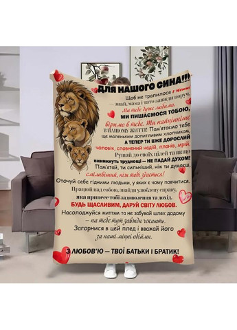 Плед "Для нашого сина" — це особливий, теплий і емоційно наповнений подарунок для хлопчика, підлітка або дорослого сина. На пледі зображена сильна та красива сім'я левів — символ підтримки, захисту, мудрості та сили роду. Зворушливе послання від батьків і братика робить цей аксесуар по-справжньому унікальним і особистим, нагадуючи синові про сімейну любов і віру в його шлях. Плед виготовлений з м'якого плюшевого велюру — теплій, комфортній та ніжній тканині, яка підходить для будь-якого сезону. Він швидко зігріває, приємний до тіла та створює відчуття затишку. Матеріал гіпоалергенний, безпечний, практичний і не викликає подразнень. Яскравий і деталізований принт наноситься методом сублимации, завдяки чому зображення залишається чітким, не вицвітає, не линяє та зберігає насичені кольори навіть після безлічі прань. Плед легко переться, швидко сохне та слугує довго. Такий плед ідеально підходить для дому — дивана, ліжка, дитячої кімнати, кабінету. Він стане душевним подарунком на день народження, Новий рік, Різдво, випускний, заселення, або просто знайомий теплоти та підтримки від сім'ї. Переваги пледа м'який плюшевий велюр яскравий, міцний сублімаційний принт теплий, ніжний, затишний гіпоалергенний матеріал не линяє й не блякне глибокий символічний дизайн із левами сильне послання "Для нашого сина" універсальний подарунок на будь-яке свято