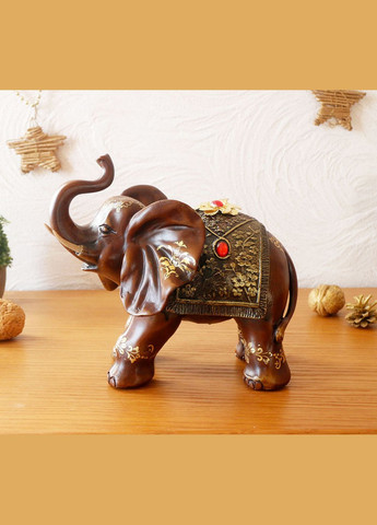 Цікава декоративна статуетка слона з хоботом до верху коричневого кольору. Зроблено зі штучного каменю (полистоуна) - легкий і міцний. Висотою 35см. Декор прикрашений килимком з металевих пластин, бісеру, каменів і золотих ниток. На голові кругла брошка з жовтим каменем всередині. Красивий невеликий слоник для прикраси будинку. Відмінний декор в вітальню. Всі фото реальні і тільки частково можуть передати чудовий зовнішній вигляд. Відмінний подарунок другу, батьку, начальнику на Новий Рік, новосілля або день народження (ювілей). Так як цей предмет інтер'єру зроблений зі штучного каменю - матеріал легкий і міцний. Якість і ціна на найбільш оптимальному рівні. Кількість в упаковці 4 шт. Кількість в ящику 4 шт.