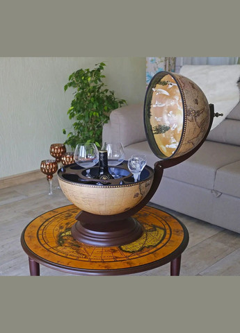 Глобус бар настільний на підставці кремового кольору зі сферою, діаметром 330 мм. Бар на підставці – це невеликий якісний глобус з зодіакальними картами, який можна зручно розташувати на столі або тумбі. Бар для напоїв виконаний з якісних матеріалів: сфера з міцного пластику, ніжки бару з дерева, підставка – МДФ. •Матеріал : Дерево; •Розмір, см : 38*33*48; •Країна виробник : Китай; •Колір : Кремовий; •Вага, кг : 3; •Діаметр сфери, см : 33; •Розмір упаковки, см : 36*36*27; •Вага з упаковкою, кг : 4; •Тип: Настільний.