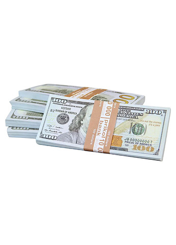 Сувенірні гроші 100 $ Доларів Сувенірні долари – Універсальний подарунок на будь-який випадок. Їх можна подарувати на день народження, ювілей, весілля чи просто так, щоб порадувати близьку людину. Вони стануть оригінальним доповненням до інтер'єру чи частиною тематичної колекції. Крім того, сувенірні долари – це чудовий спосіб зберегти пам'ять про подорож або знаменну подію. Ігрові сувенірні долари створені для розваг, використання в іграх або пам'ятних предметів, але не підходять для розрахунків або фінансів. Де можна використовувати сувенірні долари? 🔹 Корпоративи: В якості призів у конкурсах, бонусів для співробітників або просто як елемент декору. 🔹 Дні народження: Як оригінальний подарунок імениннику або як елемент святкового декору. 🔹 Весілля: Для створення фотозони або як елемент весільного декору. 🔹 Дитячі свята: В якості ігрової валюти або призів у конкурсах. 🔹 Виставки та ярмарки: Для проведення акцій та привернення уваги відвідувачів. Характеристики: ✔ Тип виробу: Сувенірні гроші / Ігрові гроші ✔ Призначення: для ігор, подарунків, сувенірів, декорацій, навчальних матеріалів. ✔ Номінальність: 100 доларів ✔ Матеріал: крейдований папір. ✔ Особливість дизайну: На кожній купюрі стоїть напис «Сувенір». ✔ Сувенір! Не є платіжним засобом ✔ Щільність паперу: 80 г/м² ✔ Розмір: 155 х 60 мм ✔ Комплектація: в одній пачці 80 купюр ✔ Вага однієї пачки: 70 г ✔ Стиль оформлення: Сувенірний / Ігровий ✔ Термін придатності: Не обмежений ✔ Країна виробництва: Україна