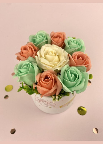 Подарунковий набір " Buquet " подарунок що закохує. До складу входить: Тубус 20*13СМ - 1 шт Троянда -10 шт Троянда велика - 2 шт Сакура - 3 шт Самшит - 2 шт Листок троянди - 2 шт