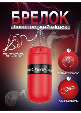 Брелок у вигляді боксерської груші — яскравий символ сили й характеру Цей мініатюрний аксесуар створений для тих, хто живе спортом. Брелок у формі боксерської груші стане помітною деталлю на ключах, рюкзаку чи в автомобілі, підкреслюючи ваш активний стиль і любов до бойових мистецтв. Переваги та особливості Зручний формат Висота брелока — лише 8,5 см. Він не займає багато місця, не заважає під час руху й чудово пасує до будь-якого аксесуару — від спортивної сумки до ключів від авто. Надійні матеріали Зовнішнє покриття — міцна екошкіра, стійка до стирання. Усередині — легкий наповнювач, який зберігає форму, але не додає ваги. Металеве кільце, ланцюжок і карабін витримують щоденне використання. Кілька варіантів кріплення Можна повісити на дзеркало, рюкзак, сумку чи використати як класичний брелок для ключів. Присоска дозволяє зафіксувати аксесуар навіть на гладких поверхнях. Подарунок із характером Ідеальний сувенір для спортсменів, тренерів і шанувальників боксу чи ММА. Міні-груша не лише прикрашає, а й нагадує: сила — у постійному русі. Покажіть свій спортивний настрій — додайте боксерську грушу до своїх повсякденних речей!