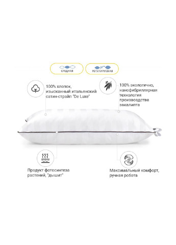 Бамбукова подушка колекції Deluxe Hand Made виконана з антиалергенного бамбукового волокна та італійського батиста, до складу якого входить 100% єгипетська бавовна, яка надає подушці м'якість, легкість, ніжність і королівський вигляд