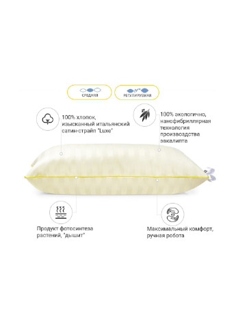 Бамбукова подушка колекції Deluxe Hand Made виконана з антиалергенного бамбукового волокна та італійського батиста, до складу якого входить 100% єгипетська бавовна, яка надає подушці м'якість, легкість, ніжність і королівський вигляд