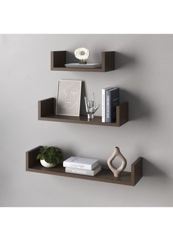 Комплект настінних полиць з трьох штук з ЛДСП – стильне та функціональне рішення для організації простору Комплект настінних полиць з трьох штук – це поєднання сучасного дизайну та практичності. Він допоможе ефективно організувати простір у вітальні, дитячій, передпокої або офісі, надавши місце для книг, декору, дрібних аксесуарів чи сувенірів. Різні розміри полиць дозволяють створювати креативні композиції на стіні та економно використовувати простір. Виготовлені з ламінованого ДСП, полиці відзначаються міцністю, довговічністю та простотою у догляді. Компактні розміри кожної полиці забезпечують зручне розташування без перевантаження кімнати. Особливості комплект із трьох настінних полиць різного розміру міцне ламіноване ДСП підходять для книг, декору та дрібних аксесуарів сучасний та лаконічний дизайн легкість монтажу та економія простору Практичність і функціональність Комплект полиць дозволяє організувати простір на стіні, створюючи акуратну та стильну композицію. Його можна використовувати як декоративний елемент або як функціональне рішення для зберігання дрібних предметів, підвищуючи комфорт у приміщенні. Технічні характеристики Тип: комплект настінних полиць Матеріал: ламіноване ДСП Розміри полиць: Ширина – 600 мм, висота – 100 мм, глибина – 150 мм Ширина – 450 мм, висота – 100 мм, глибина – 150 мм Ширина – 300 мм, висота – 100 мм, глибина – 150 мм Кількість полиць: 3 Призначення: для дому, офісу, дитячої, передпокою