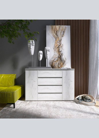 Комод Еверест КЛ-4 Лайт Комод Еверест з колекції Лайт - це універсальний предмет меблів, який чудово підійде як для спальні, так і для вітальні. Сучасний і лаконічний дизайн дозволяє йому гармонійно вписатися в будь-який інтер'єр. Місткі шухляди та полиці забезпечують зручне зберігання різноманітних речей, а простора верхня поверхня ідеально підходить для розміщення декору, квітів, книг або інших необхідних предметів. Матеріал виготовлення Комод виготовлено з високоякісного ЛДСП, що забезпечує міцність і довговічність виробу. Кромка-ПВХ захищає краї від зносу, подовжує термін служби меблів і робить їх більш естетичними. Використання сучасних матеріалів робить комод надійним і стійким до повсякденного використання. Телескопічні напрямні У комоді використовуються телескопічні напрямні, які забезпечують легкість і безшумність руху шухляд. Плавне і безшумне відкривання шухляди з повним доступом до її вмісту, додає зручності у використанні. Телескопічні механізми розраховані на довгий термін служби і витримують регулярне використання без деформацій і заїдань. Особливості Місткі висувні шухляди. Комод оснащений чотирма шухлядами з телескопічними направляючими і полицями із закритими дверцятами , що забезпечує комфортне використання і зручну організацію простору. Універсальність. Ідеально підходить як для спальні, так і для вітальні, займаючи мінімум простору, але забезпечуючи максимальну функціональність. Характеристики: Матеріал: ЛДСП, ПВХ (кромка); Ширина: 1400 мм; Глибина: 377 мм; Висота: 930 мм; Колір: Дуб Крафт білий.