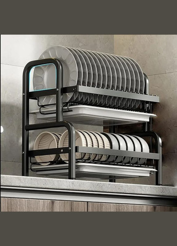 Тримайте посуд у порядку: сушарка для посуду на кухонній стійці містить 17 тарілок. Ви також можете зберігати миски, склянки та інше кухонне начиння на нижньому рівні практичної полиці. Сушарка для посуду виготовлена ​​з високоякісної сталі та покрита високотемпературним лаком для запікання. Це запобігає появі іржі та забезпечує довгий термін служби. Нековзна кришка внизу забезпечує стійкість, її нелегко трясти. Вона міцна, підходить для тривалого використання. Не турбуйтеся про безлад на кухні. Підходить для зберігання чашок, мисок, посуду та іншого кухонного начиння. Використовуйте робочу поверхню з двоярусною кухонною полицею для посуду. На першому рівні є місце для фруктів, овочів, кавників та до 15 тарілок. На другому рівні можна розмістити миски, тарілки, пляшки та до 18 мисок, що ідеально підходить для вашої обмеженої кухонної стільниці. Розміри: 43 х 42 х 23,5 см. 2 полиці для посуду з детальними інструкціями з встановлення, всі деталі, інструменти та інструкції включені У комплект, частини полиці знімні, ви можете встановити їх відповідно до ваших потреб, це просте завдання, навіть ваша дитина зможе виконати збірку за кілька хвилин. Колір ‎Чорний
