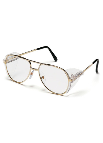 Характеристики: колір лінз прозорий; материал лінз полікарбонат; металева оправа; максимальнаий захист від ультрафіолету UV400; захист від подряпин (спеціальне покриття на лінзах, яке продовжує термін їх експлуатації); носоупори що регулюються; гарний захист з усіх боків (декоративні платикові шторки); Відповідність міжнародним стандартам безпеки та вимогам технічного регламенту засобів індивідуального захисту: ANSI Z87.1 High Impact Requirements Особливості: Стильні захисні окуляри в стилі "авіатори".