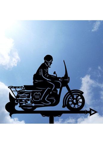 Розміри: Малий 50 см на Альтанку. Середній 70 см на будинок 1-2 поверхи. Великий 100 см на будинок 2-3 поверхи. В комплекті: 1) Сама фігура, товщина сталі 2-3 мм, колір чорний (фарба порошкова в два шари), вага в зборі 5-12 кг. 2) Сторони світу на вибір Укр, Рус, Англ. 3) Поворотне кріплення на двох шарикових підшипниках з кріпленням на коньок або з боку. Виготовлення флюгерів на замовлення по фото.