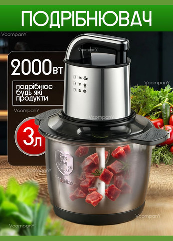 Кухонний комбайн Кухонний комбайн – це портативний і багатофункціональний подрібнювач, блендер, м’ясорубка, млин для швидкого подрібнення м’яких продуктів, таких як: фрукти, перець, змішування різних соусів, яєць. Чаша об’ємом 3,0 літра дозволяє готувати великі порції їжі за один раз. Має 3 швидкості роботи та потужність 2000 Вт: комбайн легко справляється з подрібненням, перемішуванням та подрібненням найтвердіших продуктів. Корпус з нержавіючої сталі міцний і надійний, а чаша, що не б’ється, захистить від щоденних подряпин, ударів і корозії. Ножовий блок комбайна має 4 спіральних ножа. Цей спеціальний дизайн леза забезпечує максимальну ефективність та швидкість подрібнення різних продуктів. Конструкція з подвійною кришкою відкривається лише після зупинки двигуна. Комбайн має систему захисту від перегріву, що забезпечує безпечне використання. Характеристики: Тип: Комбайн кухонний подрібнювач Колір: сталевий Потужність: 2000 Вт Матеріал: нержавіюча сталь Об’єм чаші: 3 л Живлення: мережа 220 В Кількість ножів: 4 спіральних гострих лез Кількість швидкостей: 3
