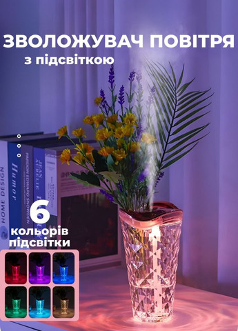 Зволожувач повітря з унікальним дизайном у вигляді кришталевої лампи. Цей прилад поєднує в собі функції зволожувача та декоративного світильника з 6-колірним підсвічуванням, створюючи романтичну та затишну атмосферу. Також може використовуватися як ваза для невеликої кількості кольорів. Переваги: ● Потрійне призначення: зволожувач повітря, світильник та ваза. ● Ефективне зволоження: два режими розпилення (безперервний та переривчастий) із частинками води розміром з нанометр. ● Великий об'єм: резервуар на 800 мл забезпечує до 20 годин роботи. ● Тиха робота: мінімальний рівень шуму не заважає сну чи роботі. ● Портативність: живлення від USB. ● Стильний дизайн: вишуканий вигляд. ● Прекрасний подарунок: підходить для різних випадків – від свят до ювілеїв. Характеристики: ● Тип: зволожувач повітря ● Живлення: USB 5V ● Матеріал: пластик ● Об'єм резервуару: 800 мл ● Режими розпилення: безперервний – до 10 годин, переривчастий – до 20 годин ● Режими підсвічування: 6-кольорове світло (RGB) ● Розміри: 118х118х209 мм ● Вага нетто: 320 г ● Колір: прозорий/золотистий