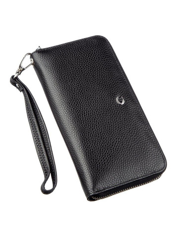 Матеріал: натуральна шкіра; Розміри (ШхВ, см): 10х19,5; Колір: чорний; Країна виробник: Китай; Країна походження ТМ: Україна. Опис: - жіночий гаманець з натуральної шкіри; - всередині розташовано три великих відділення для купюр по всій довжині; - одне велике відділення на блискавці по всій довжині; - два потаємних відділення по всій довжині; - 8 відділень для карток; - закривається гаманець на блискавку; - ремінець на зап'ястя; Витончений жіночий клатч чорного кольору з натуральної високоякісної шкіри. Дуже практичний і багатофункціональний, має достатню кількість необхідних відділень і кишень для купюр, карт, документів та інших цінностей. Можна носити в сумці, портфелі або як самодостатній аксесуар за допомогою ремінця ана зап'ястя, що знімається. Такий клатч прикрасить жінку будь-якого віку та соціального стану. Підкреслить її відмінний смак і почуття стилю. Купуйте цей виріб для себе або зробіть неповторний подарунок дорогій людині. При покупці клатч буде упакований в картонну фірмову коробку білого кольору.