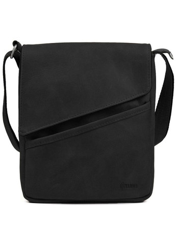 Чоловіча сумка через плече із натуральної м'якої телячої шкіри, чорного кольору від українського бренду TARWA. Незважаючи на невеликі розміри модель може вміщувати документи формату А5, планшет. Виріб на одне відділення, що застібається на блискавку і зверху накривається шкіряним клапаном, з магнітною кнопкою. Усередині розташовуються кишені: дві відкриті кишені для телефону і портмоне, а також одна врізна на блискавці для дрібних предметів. На лицьовій стороні сумки, під клапаном, є дві кишені з блискавками. На задній стороні є врізна кишеня на блискавці. Аксесуар зручно носити на плечі, завдяки плечовому шкіряному ременю, що регулюється. Розміри: 22 х 4 х 27