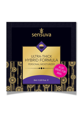 Ультра-густий гібридний лубрикант, який мінімізує почуття тертя, захищає ніжну слизову та шкіру і при цьому працює дійсно довго — тепер реальність. Рекомендуємо купити лубрикант на гібридній основі Sensuva Ultra-Thick Hybrid Formula преміум-класу, спеціально створений для комфортного анального сексу, а також для випадків, коли потрібна особливо густа і довга змазка. Кремоподібна консистенція і зволожуючий ефект дозволять вам забути про сухості і неприємних відчуттях! Цей лубрикант відрізняється своєю кремовою текстурою і практично нескінченним дією — те, що потрібно для довгих чуттєвих анальних ігор, а також для вирішення проблеми з вагінальної сухості (внаслідок вікових змін, прийому лікарських препаратів або індивідуальних особливостей). Чому саме Sensuva Ultra-Thick Hybrid Formula: кремова ніжна текстура без липкості; дійсно тривалий ефект: змазку нікуди не дінеться під час самих довгих ігор; ідеальне рішення для анального сексу; підходить для чутливої шкіри/слизової; вирішує проблему недостатньої природної змазки; надає зволожуючий ефект; pH-збалансована формула; без запаху і смаку. Невеликий обсяг дозволяє брати пробник з собою в поїздки. Ingredients: Water, Hydroxyethyl Cellulose, Dimethicone, Propanediol, Isopropyl Palmitate, Sorbitan Monostearate, Potassium Sorbate, Sodium Benzoate, Polyacrylate 13, Polyisobutene, Polysorbate 20, Sodium Citrate, Artificial Flavor