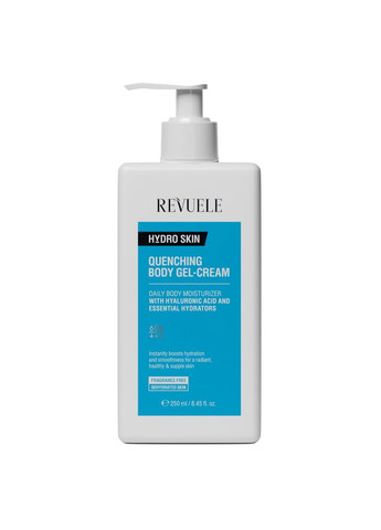 Легка, схожа на воду, зволожуюча текстура перетворилася на насичений зволожувач для тіла, який покращує зволоження шкіри, забезпечуючи пружний і красиво зволожений вигляд. Завдяки ГІАЛУРОНОВІЙ КИСЛОТІ ТА ОСНОВНИМ ЗВОЛОЖНЮВАЧАМ, він забезпечує сплеск інтенсивного зволоження та відновлення. Гель-кремова текстура нежирна та швидко вбирається для миттєвого ефекту м’якості шкіри. Ця формула зволоження ідеально підходить для НОРМАЛЬНОЇ ДО ДУЖЕ СУХОЇ ШКІРИ. Склад Ingredients: Water / Aqua, Isopropyl Palmitate, Glycerin, Hydrolyzed Tara Gum / Hydrolyzed Caesalpinia Spinosa Gum, Tara Gum / Caesalpinia Spinosa Gum, Dimethicone, Sorbitan Olivate, Cetearyl Alcohol, Sodium Hyaluronate, Phenoxyethanol, Hydroxyethyl Acrylate/Sodium Acryloyldimethyl Taurate Copolymer, Disodium EDTA, Sodium Benzoate, Potassium Sorbate, Brilliant Blue / CI 42090. Об'єм:250 мл Виробник: Болгарія. Revuele