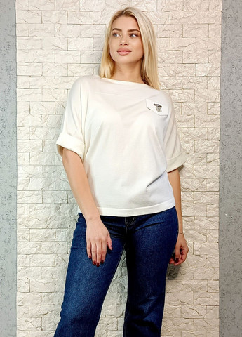 Жіночий джемпер з коротким рукавом – американка у білому кольорі — витончене поєднання мінімалізму та вишуканості. Світлий відтінок додає образу свіжості й легкості, а на фоні білого особливо виразно виглядає декоративний клапан з екошкіри з металевим елементом, оздобленим стразами. Контраст світлого трикотажу й глянсових деталей створює відчуття сучасної розкоші. Теплий щільний трикотаж робить цю модель практичною для прохолодної пори року. Завдяки лаконічному силуету «американка» білий джемпер легко поєднувати з базовим гардеробом, але він завжди виглядатиме акцентно. У повсякденних луках він гармонійно поєднується з денімом, пастельними чи яскравими відтінками, а для більш святкових образів достатньо додати прикраси або контрастні аксесуари. Білий джемпер американка створює відчуття впевненого стилю без надмірностей — стримана елегантність у чистому вигляді.