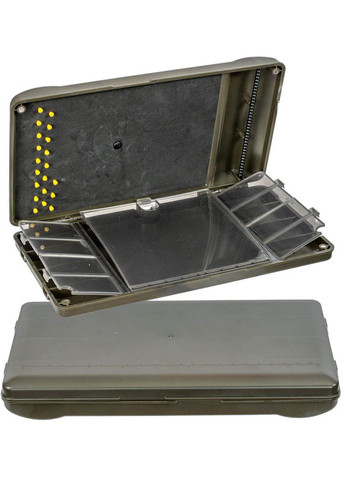 Поводочниця, коробка для повідків Carp Zoom Rig box Дуже практичний твердий пенал Carp Zoom Rig box для коропових повідців. Усередині є пластикова клямка для кріплення гачків з повідцем, в який можна прикріпити за допомогою кнопок. Кнопки із жовтою круглою головкою розташовані у двох відсіках. Пенал темно-зеленого кольору закривається сірою прозорою кришкою на трьох петлях із двома клямками. Доступна і дуже практична поводочниця не тільки для лову коропа. Технічні параметри: Розміри: 348x85x25 мм Можна розмістити до 20 повідків із макс. довжиною 30 см Вага: 193 г