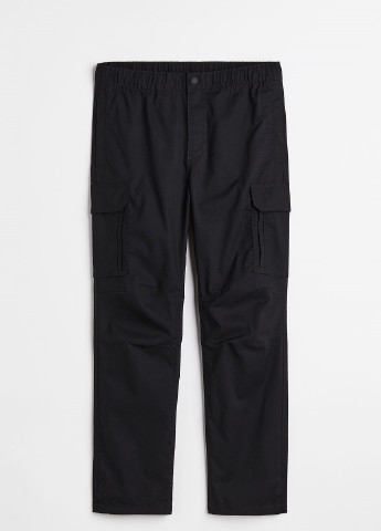 Штани-карго із міцної тканини ріпстоп. Еластичний пояс із прихованим шнурком, блискавкою та кнопкою. Кишені на штанинах з клапанами та обтягнутими кнопками, прорізні кишені на спині та прорізні кишені на обтягнутих блискавках у бічних швах та на кишенях на штанинах. Еластичний куліска зі стопорами на кінцях штанин.