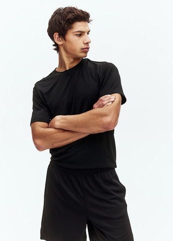Короткі спортивні шорти з швидковисихаючого, дихаючого функціонального матеріалу, який ефективно відводить вологу назовні та забезпечує приємну прохолоду та сухість під час тренувань. Еластичний пояс із прихованою куліскою, кишенями в бокових швах і розрізами внизу з боків.