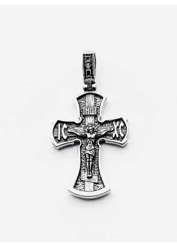 Срібний хрестик має зображення розп'яття Ісуса Христа, виконані абревіатури "Ісус Христос", "Царя Слави" (ЦС) і означає панування над віруючими в Бога, ім'я Ніка, що символізує перемогу Ісуса Христа над смертю. На звороті є напис Спаси та Збережи, прикрашений декоративним візерунком. Розмір хрестика - 39*20мм (з вушком) Розміри вушка всередині – 7*4мм Середня вага – 2,44г(±0,5) Вироби виготовлені в Україні та пройшли контроль Державної пробірної палати України та ВТК. Проба, пломба та бирка виробника присутні. Всі вироби відправляються у фірмову коробочку. Замовляйте зараз та отримайте стильний та духовно важливий аксесуар, який буде з вами на кожному кроці.