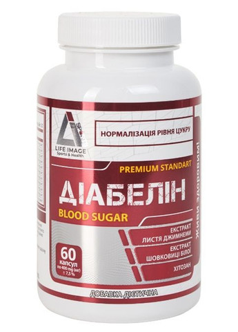 Діабелін – інноваційна дієтична комплексна біодобавка для нормалізації рівня цукру в крові, розроблена виключно з натуральних складників. М’яко впливає на синтез інсуліну. Всі компоненти підібрані з врахуванням їх дії, гармонійно поєднуються та доповнюють один одного. Дія Містить ефективні натуральні компоненти, в тому числі ті, які використовуються в аюрведичній практиці багато століть. Допомагає відновлювати клітини підшлункової залози, які відповідають за синтез інсуліну. Сприяє загальному зміцненню організму Нормалізації функції СС та ендокринної систем Зниження рівня цукру в крові Нормалізації кров’яного тиску Підвищенню працездатності розумової та фізичної Запобігає передчасному старінню Для детоксикації. Призначення Для зниження рівня цукру в крові Нормалізації травлення та кращого засвоєння поживних речовин Покращення обміну речовин Покращення роботи печінки Для зниження кров’яного тиску Підвищення імунітету Зниження ваги, зменшення жирових відкладень Усунення ризику утворення тромбів Покращення пам’яті, концентрації, працездатності Виведення токсичних речовин Рекомендації по застосуванню Спосіб застосування та рекомендована добова порція: приймати по 2 капсули двічі на день, за 30-40 хвилин до їди, запити водою. Курс прийому – 1-2 місяці. Додаткові рекомендації: добову дозу не можна перевищувати, перед початком прийому слід проконсультуватися з лікарем. Застереження: У разі вагітності, годування груддю, прийому медичних препаратів або наявності будь-яких захворювань слід проконсультуватися з лікарем перед вживанням харчових добавок. У разі виникнення побічних реакцій припиніть використання та проконсультуйтеся з лікарем. Зберігати в недоступному для дітей місці. Не використовувати, якщо зовнішня захисна мембрана відсутня або пошкоджена. *** Виробник залишає за собою право змінити зовнішній вигляд упаковки, склад та/або консистенцію продукту. **** БАД не є лікарським засобом!