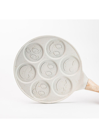 Сковорода для панкейків з антипригарним покриттям 26,5 см, бежевий Приготування смачних панкейків стає справжнім задоволенням з цією вишуканою сковородою з антипригарним покриттям, виготовленою з високоякісного алюмінію. Її діаметр 26.5 см і товщина стінок 3 мм забезпечують відмінний розподіл тепла, що гарантує рівномірне та ефективне приготування кожної порції. Завдяки практичному дизайну, сковорода має 7 окремих секцій, кожна з яких вміщує 50 мл суміші та прикрашена милими смайлами, що робить процес приготування веселим та креативним. Ручка з бакелітового матеріалу, яка надійно прикріплена за допомогою шурупа, забезпечує зручність та безпеку під час використання. Готуючи на малому або середньому вогні, ви зможете контролювати процес та досягати оптимальних результатів. Використовуйте дерев'яні або силіконові лопатки, щоб уникнути пошкоджень антипригарного покриття та зберегти сковороду в ідеальному стані. Дбайливий догляд за сковородою продовжить її термін служби. Мийте її тільки після повного охолодження та уникайте використання жорстких мочалок, абразивних паст та агресивних мийних засобів. Цей продукт стане незамінним помічником на вашій кухні, перетворюючи приготування панкейків на справжнє мистецтво! Характеристики: Матеріал: алюміній Об'єм однієї секції: 50 мл Діаметр: 26.5 см Висота: 1 см Підходить для газових та електричних плит