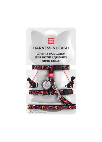 Шлей WAUDOG виконаний із зносостійкого нейлону, прикрашеного барвистим малюнком. Завдяки яскравим і привабливим дизайнам цей виріб просто не зможе залишитися непоміченим.