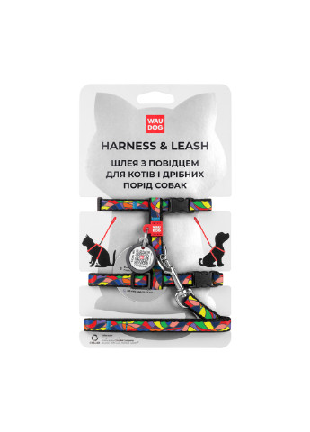 Ширина, мм-20, обхват грудей, см-55-80, обхват шиї, см-45-65. Матеріал-нейлон. Шлей з якісного зносостійкого нейлону, з використанням міцної пластикової та металевої фурнітури. Виріб укомплектований металевим адресником із QR-кодом. Шлей WAUDOG виконаний із зносостійкого нейлону, прикрашеного барвистим малюнком. Завдяки яскравим і привабливим дизайнам цей виріб просто не зможе залишитися непоміченим. Переваги: •яскравий дизайн; зносостійкий нейлон; •металева пряжка-фастекс; •адресник з QR-паспортом; • довічна пряма гарантія на фурнітуру від COLLAR Company;