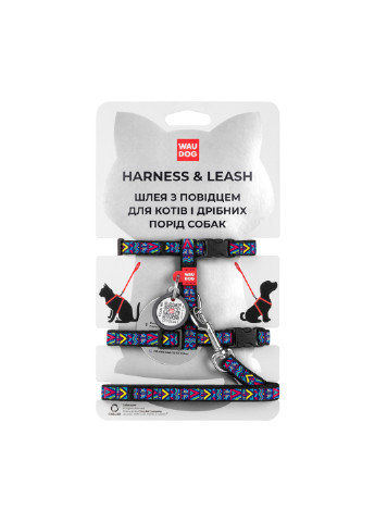 Ширина, мм-15, обхват грудей, см-30-50, обхват шиї, см-30-40. Матеріал-нейлон. Шлей з якісного зносостійкого нейлону, з використанням міцної пластикової та металевої фурнітури. Виріб укомплектований металевим адресником із QR-кодом. Шлей WAUDOG виконаний із зносостійкого нейлону, прикрашеного барвистим малюнком. Завдяки яскравим і привабливим дизайнам цей виріб просто не зможе залишитися непоміченим. Переваги: •яскравий дизайн; зносостійкий нейлон; •металева пряжка-фастекс; •адресник з QR-паспортом; • довічна пряма гарантія на фурнітуру від COLLAR Company;