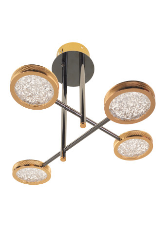 Світлодіодна сучасна люстра BL-668S/4 32W G/BK призначена для організації базового освітлення у вітальні, спальні та холі. Модель також можна застосовувати в готелях, салонах, невеликих бутиках. Стильний дизайн робить світильник вагомою частиною інтер’єру. Люстру відрізняє оригінальне поєднання контрастних кольорів – чорного та золотого. Корпус та тримачі джерел світла виготовлені з металу, вони пофарбовані в чорний колір. Світлодіоди кріпляться на 4 золотих кругах, прикрашених прозорим рельєфним пластиком, що імітує кришталь. Потужність люстри – 32 Вт, колір світіння – теплий білий. Світла люстри досить для кімнати площею 15-17 кв. м. Діоди генерують світловий потік з віддачею 80 лм/Вт та високим індексом передачі кольору – > 80Ra. ЛЕД світильники дуже ощадливо споживають електроенергію та мають тривалий термін експлуатації.