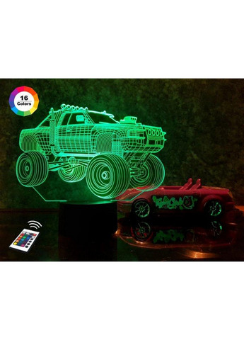 Відправка протягом 1-2 робочих днів.3D нічник "Автомобіль 34" (ВОЛІЧНЕ ЗОБРАЖЕННЯ) подарункове пакування + 16 кольорів + пульт ДК + мережевий адаптер + батарейки (3ААА) 3DTOYSLAMP 3D стільники-нічники торгової марки 3DTOYSLAMP з ефектом тривимірного зображення стануть чудовим доповненням будь-якого інтер'єру. Просте управління. Колір світіння змінюється натисканням на кнопку на корпусі, а також за допомогою пульта ДК. Є режим автоматичного перемикання кольорів та можливість регулювати яскравість підсвічування нічника. Безпека. Світильник не нагрівається, не має запаху. Робота від батарей та мережі. 3D світильник "Автомобіль 34" може працювати від мережі, комп'ютера або power-банку, а також від батарейок (мікропальчикові 3 шт.) ЙДУТЬ У КОМПЛЕКТІ. Керування за допомогою пульта: Спрямуйте пульт у бік бази. \r\nНатисніть ON — для увімкнення, OFF — для вимкнення лампи. Яскравість світіння регулюється за допомогою кнопок зі стрілочками вгору/вниз. Для вибору кольору світіння натисніть кнопку відповідного кольору. FLASH — зміна кольору за порядком. STROBE — зміна кольору у випадковому порядку. FADE — кольори змінюються з ефектом згасання. SMOOTH — плавна зміна кольору. Вам понравився кілька дизайнів 3D нічників і не знаєте, який вибрати? Чи можливо вашій дитині понравився інший мультяшний герой або Ви змінили інтер'єр у вашому поміщенні? Не обов'язково купувати новий нічник!; Унікальною особливістю 3D нічників є те, що зображення у ньому знімні. У нашому магазині представлений великий асортимент змінних пластин. Досить замовити у нас додаткове зображення — і у Вас новий 3D-нічник! Характеристики: Колір світла: 16 квітів світіння; Матеріал: акрил, пластик; Розмір: 16х25 см; Можливість: 5 Вт; Комплектація: подарункове пакування, корпус, акрилова пластина (ВОЛІЧНЕ ЗОБРАЖЕННЯ), пульт ДК, USB-кабель 1.5 м, мережевий адаптер,батарейки (3ААА), інструкція по-русски; Гарантія: 12 місяців; Ресурс лампи: до 50 000 годин роботи МАТЕРІАЛІ НЕ МІСТИТИ ШКІДЛИВИХ МОВ! НЕ НАГРІВАЄТЬСЯ! БЕЗПЕКА ДЛЯ ДІТЕЙ! Вся продукція торгової марки 3DTOYSLAMP пройшла тщательну перевірку на якість! Тип кріплення: На поверхню; Стан: Новий; Комплектація: корпус, акрилова пластина, шнур USB -1.5 м, мережевий адаптер, інструкція російською мовою; Тип: 3D-світильник; Споживання, Вт/год: 0.5; Гарантія: 6 місяців; Тип джерела світла: світлодіодні (LED); Потужність, Вт.: 5; Додаткові характеристики: 7 кольорів світіння (теплий білий, зелений, синій, червоний, фіолетовий, блакитний, жовтий); Вимикач: сенсорний, на корпусі; Матеріал корпусу: пластик; Живлення: Від мережі, комп'ютера, Power Bank, прикурювача в автомобілі, 3хААА (3 мікропальчикові батареї); Країна виробник товару: Китай; Розмір: 160х250х87 мм;