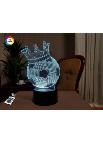 Відправка протягом 1-2 робочих днів.3D нічник "Футбольний м'яч з короною" (ЗБІЛЬШЕНЕ ЗОБРАЖЕННЯ) подарункова упаковка + 16 кольорів + пульт ДК + мережевий адаптер + батарейки (3ААА) 3DTOYSLAMP 3D-світильники-нічникиторгової марки 3DTOYSLAMP з ефектом тривимірного зображення стануть відмінним доповненням будь-якого інтер'єру. Просте управління. Колір світіння змінюється натисненням на кнопку на корпусі, а також за допомогою пульта дистанційного керування. Є режим автоматичного перемикання кольорів та можливість регулювати яскравість підсвічування нічника. Безпека. Світильник не нагрівається, не має запаху. Робота від батарей і від мережі. 3D світильник "Футбольний м'яч з короною" може працювати від мережі, комп'ютера або power-банку, а так само від батарейок (мікропальчикові 3 шт) ЙДУТЬ У КОМПЛЕКТІ. Управління за допомогою пульта:\r\n Направте пульт у бік бази. Натисніть ON — щоб увімкнути, OFF — для вимкнення лампи. Яскравість світіння регулюється за допомогою кнопок зі стрілками вгору/вниз. Для вибору кольору світіння натисніть кнопку відповідного кольору. FLASH — зміна кольору по порядку. STROBE — зміна кольору у випадковому порядку. FADE — кольори змінюються з ефектом загасання. SMOOTH — плавна зміна кольору. Вам понравилось кілька дизайнів 3D каганців і не знаєте який вибрати? Можливо, вашій дитині понравився інший мультяшний герой чи Ви змінили інтер'єр у вашому поміщенні? Не обов'язково купувати новий каганець! ; Унікальною особливістю 3D ламп є те, що зображення в ньому знімні. У нашому магазині представлений великий асортимент змінних пластин. Досить замовити у нас додаткове зображення – і у Вас новий 3D каганець! Характеристики: Колір світла: 16 кольорів світіння; Матеріал: акрил, пластик; Розмір: 22х13 см; Можливість: 5 Вт; Комплектація: подарункова упаковка, корпус, плоска пластина (ЗБІЛЬШЕНА ЗОБРАЖЕННЯ), пульт ДК, USB - кабель 1.5 м, мережевий адаптер,батарейки (3ААА), інструкція на рос. мові; Гарантія: 12 місяців; Ресурс лампи: до 50 000 годин роботи МАТЕРІАЛІ НЕ МІСЦЯТИ ВРОЧКИ! НЕ НАГРІВАЄТЬСЯ! БЕЗПЕЧНО ДЛЯ ДІТЕЙ! Вся продукція торгової марки 3DTOYSLAMP пройшла ретельну перевірку на якість! Тип кріплення: На поверхню; Стан: Новий; Комплектація: корпус, акрилова пластина, шнур USB -1.5 м, мережевий адаптер, інструкція російською мовою; Тип: 3D-світильник; Споживання, Вт/год: 0.5; Гарантія: 6 місяців; Тип джерела світла: світлодіодні (LED); Потужність, Вт.: 5; Додаткові характеристики: 7 кольорів світіння (теплий білий, зелений, синій, червоний, фіолетовий, блакитний, жовтий); Вимикач: сенсорний, на корпусі; Матеріал корпусу: пластик; Живлення: Від мережі, комп'ютера, Power Bank, прикурювача в автомобілі, 3хААА (3 мікропальчикові батареї); Країна виробник товару: Китай; Розмір: 220х130х87 мм;