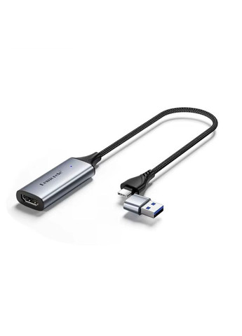 Редагування під час запису Він може передавати відеосигнали високої чіткості із зовнішніх джерел (таких як камери, телевізори, ігрові приставки тощо) на комп'ютери або інші пристрої для обробки, редагування або зберігання. Після захоплення відеосигналу в комп'ютері користувач може використовувати спеціальні програмні додатки, такі як програмне забезпечення для редагування відео або програмне забезпечення для прямої трансляції для подальшої обробки. Плата захоплення з алюмінієвого сплаву Карта захоплення з алюмінієвого сплаву надає користувачам переваги в міцності конструкції, продуктивності розсіювання тепла та надійності, використовуючи легкі, міцні та корозійні характеристики алюмінієвого сплаву, а також представляє сучасний дизайн зовнішнього вигляду. Плата захоплення має подвійну конструкцію USB та Type-C: Завдяки двоголовому дизайну, карта захоплення може задовольнити потреби різних користувачів, а також підвищити її гнучкість та універсальність. Незалежно від того, чи використовуєте ви старий пристрій з USB-інтерфейсом, чи новий пристрій TYPEC, ця карта захоплення полегшує підключення та забезпечує високоякісне відеозахоплення. Подовжений плетений дріт гнучкий і міцний Використання 20 см плетеного дроту дозволяє вільно розміщувати обладнання та підключати його до комп'ютера або іншого обладнання, гнучкість плетеного дроту Будь то макет робочого столу в робочому середовищі, конфігурація обладнання в прямому ефірі гри або налаштування сцени у відеопродукції, розширена конструкція плетеного дроту може забезпечити більшу свободу та зручність для задоволення потреб користувачів. Невелика та портативна карта захоплення Карта захоплення - це апаратний пристрій з компактним дизайном і невеликою вагою, призначений для забезпечення зручних рішень для захоплення відео. Його можна легко переносити та використовувати для зйомки на природі, під час подорожей, прямих трансляцій або інших сцен, які потребують мобільного або імпровізованого налаштування. Широкий спектр використання Плата відеозахоплення Lemorele сумісна з Mac OS, Windows, Linux, Android та іншими операційними системами. Ви можете легко транслювати та записувати відео на OBS, Twitch, YouTube, Facebook, Twitter, Potplayer, VLC, TikTok тощо за допомогою пристрою відеозахоплення. Застосовні сценарії включають захоплення відео високої чіткості, відеоконференції, навчальні записи, медичну візуалізацію, ігрові розваги в реальному часі, домашній кінотеатр тощо.