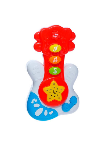 Який маленький музикант без своєї гітари? Музична іграшка-проектор Гітара – дитяча гітара, що навчає, виготовлена в зручній для захоплення дитячою ручкою формі. Завдяки тому, що кнопки мають різну геометричну форму та колір та містять геометричний значок, дитина зможе розвинути та закріпити знання. Іграшка відтворює колискові піски, пісеньки та різні звуки. Крім того, іграшка обладнана проектором зоряного неба. У процесі гри дитина зможе розвинути дрібну моторику рук та пальчиків, слухове та зорове сприйняття, вивчити нові пісеньки, потренує свою пам'ять, освоїть простий рахунок та закріпить квітознавство. Іграшка виготовлена з якісного та безпечного пластику, пофарбованого у яскраві кольори. Розмір іграшки: 5 см × 5 см × 14 см Країна реєстрації бренду: Китай; Виробник: Bambi; Бренд: Bambi; Розмір див: 13х6, 5х18, 5 см; Країна-виробник товару: Китай; Габарити: ширина: 13; Габарити: висота: 6.5; Габарити: довжина: 18.5; Вага товару: 0.2; Вік: Від 18 місяців; Матеріал: Пластик; Тип: інтерактивні іграшки; Торгова марка: Bambi; Колір червоний; Розмір виробу: 6,5 х18, 5х13 см; Стать: Унісекс; Упаковка: Демонстраційно-відкрита; Вікова група: від 1,5 років;