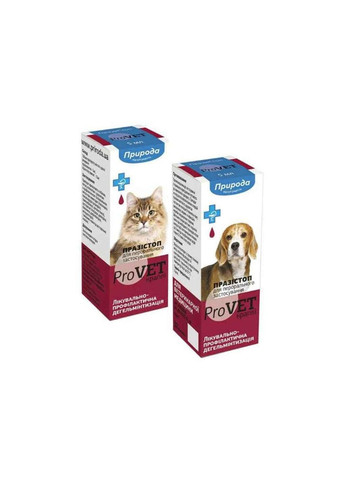 Механізм дії празиквантелу і пірантелу памоату заснований на пригніченні нервово-м’язової діяльності і порушенні енергетичного обміну паразитів, що викликає параліч і загибель гельмінтів з подальшим виведенням їх із шлунково-кишкового тракту. Показання до застосування Препарат призначають собакам, котам, кошенятам і цуценятам у якості профілактики та лікування при нематодозах (токсокароз, токсаскарідоз, унцінаріоз, трихоцефальоз, анкілостомоз), цестодозах (теніїдоз, дипілідіоз, ехінококоз, дифіллоботріоз, мезоцестоідоз) і змішаних нематод-цестодозних інвазіях. Спосіб застосування та дозування Перед використанням флакон із суспензією необхідно збовтати. Препарат вводиться з невеликою кількістю корму або на корінь язика за допомогою шприца-дозатора у наступних дозах: котам, кошенятам, цуценятам і собакам — 1,0 мл суспензії на 1 кг маси тіла тварини. Попередня голодна дієта і застосування проносних засобів не знадобиться. При сильній інвазії дегельмінтизацію рекомендовано повторити через 10 днів. Для профілактики дегельмінтизацію проводять раз у квартал. Протипоказання Препарат не слід застосовувати самкам у першій половині вагітності, цуценятам і кошенятам до тритижневого віку, хворим і ослабленим тваринам. Дегельмінтизацію вагітних і годуючих самок при необхідності проводять після консультації з ветеринарним лікарем, за 3 тижні до пологів і через 2–3 тижні після пологів.