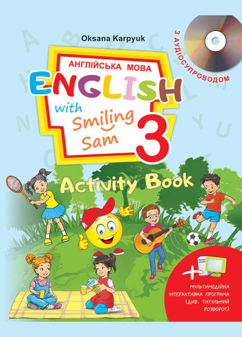 Робочий зошит до підручника 'English with Smiling Sam 3' є компонентом навчально-методичного комплекту з англійської мови для 3 класу Нової української школи, створеного на основі авторської концепції позитивної мотивації та креативного іншомовного навчання молодших школярів, в основі якої лежить діяльнісний підхід та комунікативно-ігрова методика. Посильні для другокласника завдання, що містяться в посібнику є структурно і змістовно інтегрованими з підручником та націлюють на краще його засвоєння матеріалу. Цікаві вправи, ігрові завдання робочого зошита сприятимуть підвищенню мотивації учня до вивчення англійської мови, збагатять його навчальний досвід та урізноманітнять навчальний інструментарій для роботи з англійською мовою у 3 класі. Робочий зошит містить аудіосупровід, який є у вільному доступі на сайті видавництва, та код доступу до інтерактивного мультимедійного додатку, за допомогою якого Ви зможете скачати програму на Ваш комп'ютер або інший пристрій. Аудіододаток містить озвучення матеріалу, призначеного для практики сприйняття на слух. Мультимедійна інтерактивна програма пропонує відеопрезентації мовного матеріалу підручника, анімовані пісні, римівки та історії, "живі" літери ї фонікси та інтерактивні ігрові вправи. Зошит-прописи додається безкоштовно з метою забезпечення дитини практикою у написанні графічних зображень англійських слів, словосполучень, речень.