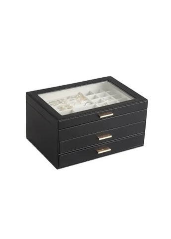 Елегантна скринька має 12 відділень для годинників та інших прикрас. Коробка має елегантний чорний колір і білі шви, що надає всьому виробу елегантності та стилю. Кришка футляра прозора, тому скриньку для годинника можна використовувати не тільки для зберігання та підтримання порядку, а й для елегантної демонстрації вмісту. Коробка стане вдалим і корисним подарунком, який напевно оцінить кожен. Він впишеться в будь-який інтер'єр, підійде як жінкам, так і чоловікам, тому безумовно стане чудовим подарунком.