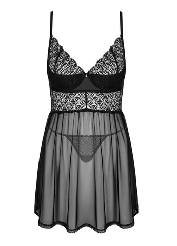 Незвичайна сорочка Obsessive Alluria з мереживними фрагментами чудово підкреслить красу жіночого тіла, і змусить партнера поглянути на обраницю по-особливому. Вона створює легкий і жіночний образ, досить відвертий, але в той же час злегка зворушливий і романтичний. Мереживна вставка на ліфі і під грудьми буде притягувати погляд партнера, а широка напівпрозора вставка по нижньому краю сорочки приверне увагу до бікіні і округлим сідницях. Виконана з прозорою сітчастої і мереживною тканини. Сорочка повністю прозора, вона не приховує жіночих принад і округлостей. Бретелі регулюються по довжині, що гарантує правильну посадку. Чашки на кісточках формують красиву лінію декольте, прикрашену невеликим бантиком. У комплекті сорочка і стрінги. Продукт не викликає алергії і не залишає слідів на тілі та одязі. Індивідуальна упаковка. Склад: поліамід 94%, еластан 6%.